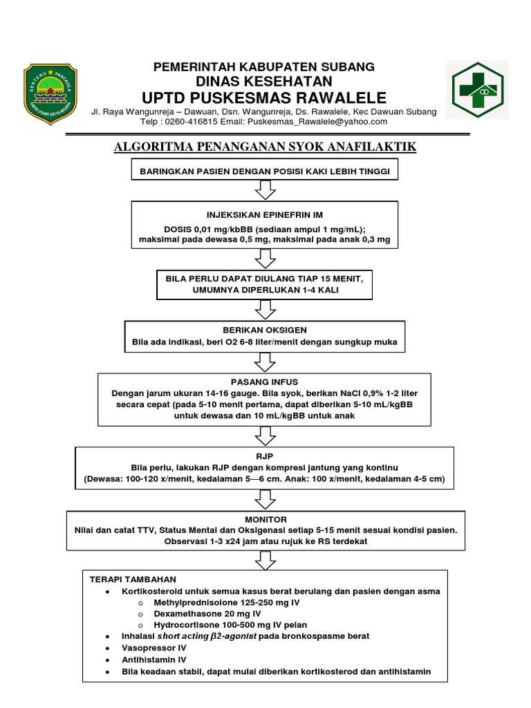 DAFTAR TILIK PENANGANAN SYOK ANAFILAKTIK PUSKESMAS. Nama Pekerjaan Syok Anafilaktik 2. Adrenalin merupakan bronkodilator yang kuat sehingga penderita dengan cepat terhindar dari hipoksia yang merupakan pembunuh utama.