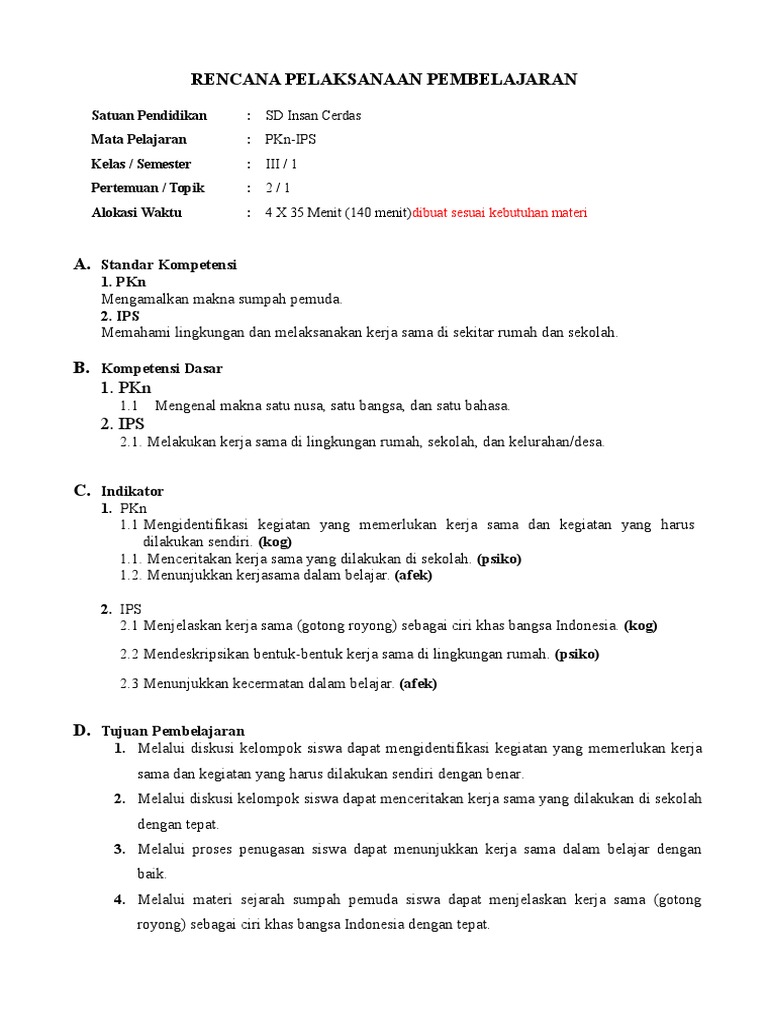 Contoh Rpp Pembelajaran Inovatif Di Sd Download File Guru